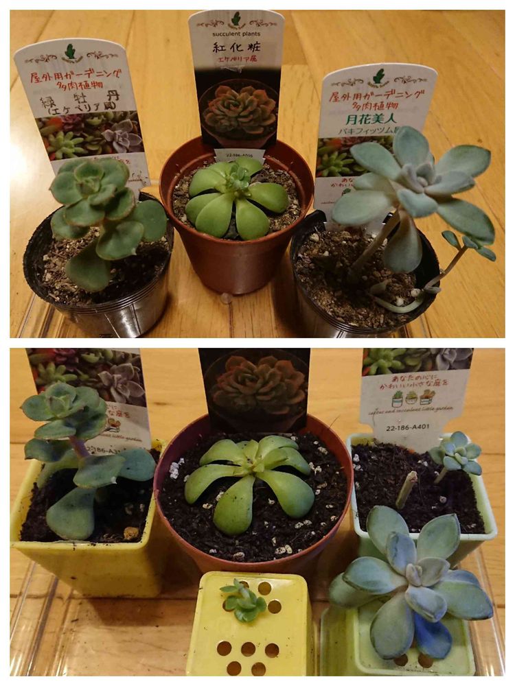 この間、多肉たちをちょっぴり整理して、今シーズンは増やさない!と心に決めたはずだったのですが。。。HCで投げ売りされてたコたちをみつけてしまいまして。。。だって、70円と100円だよ。。。本来の形になるのはいつになるか分かりませんが、気長に育てます♪