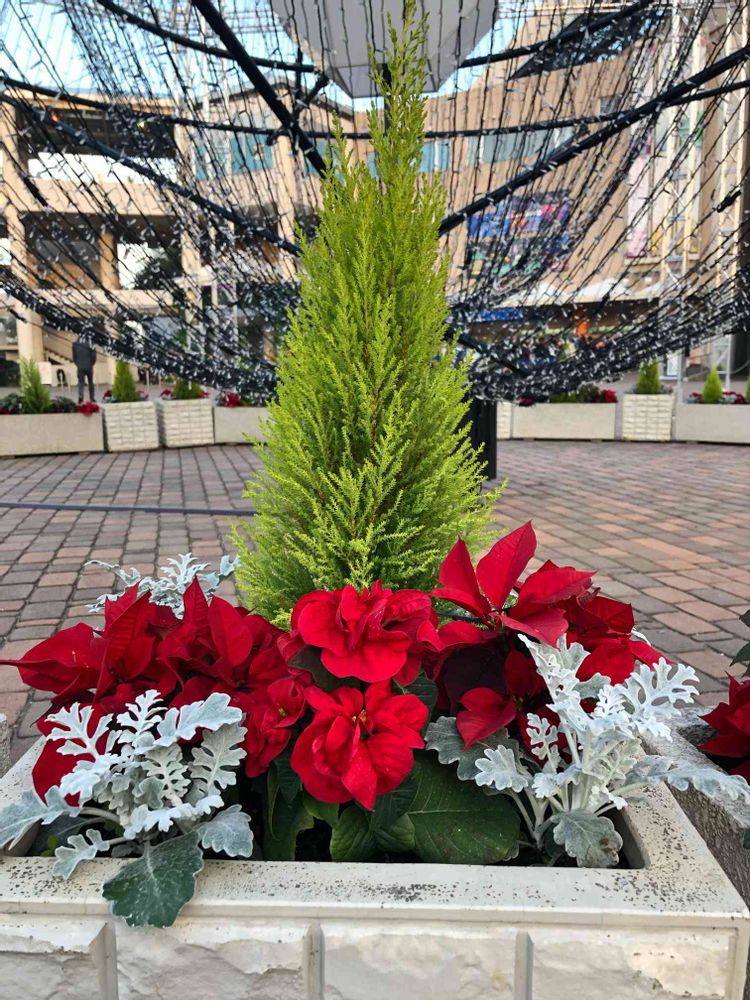 ゴールドクレストさんの黄緑とポインセチアさんの赤がとってもよくお似合い*\(^o^)/*。