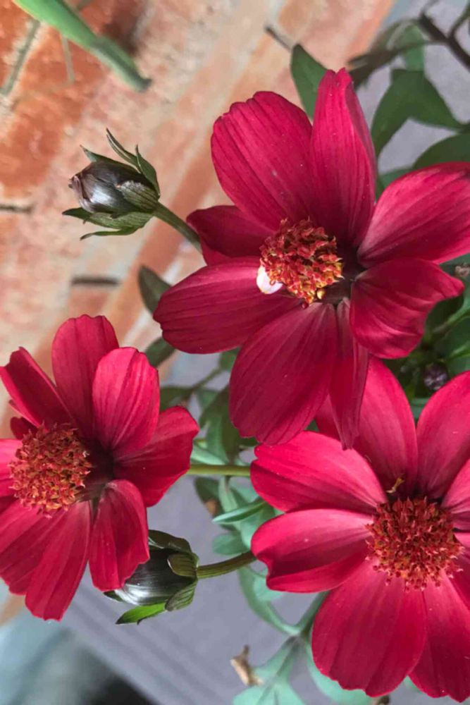 チョコレートコスモス🌸もこんなに赤みがかった種類の子がいるんですね❤️