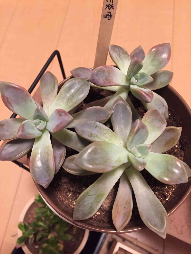日当たり&風通し不足のように見えます。特にこれらの、ベンケイソウ科クラプトペタルム属は寒さに強いほうです。外管理のほうが、まのびせず、色よく元気に育ちます。