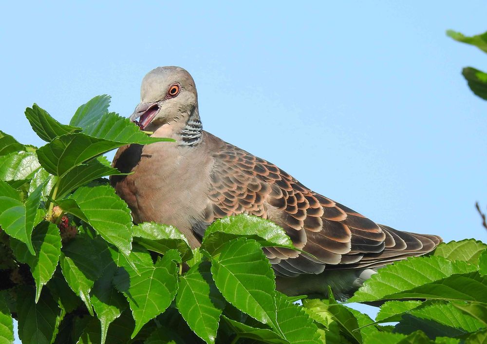 桑の実を採餌する キジバト
