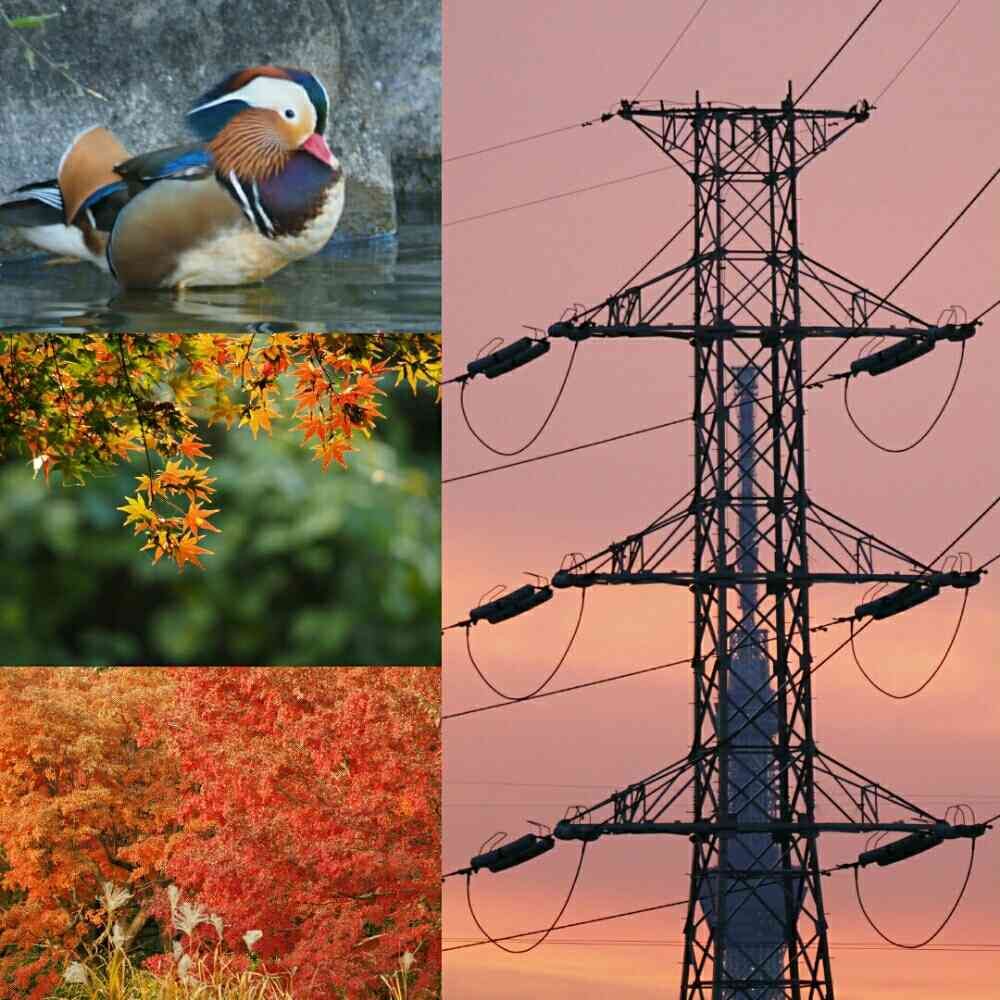 すみっこの方を探したら エッ!ど真ん中鉄塔の真後ろだった💞紅葉 綺麗ですね💓