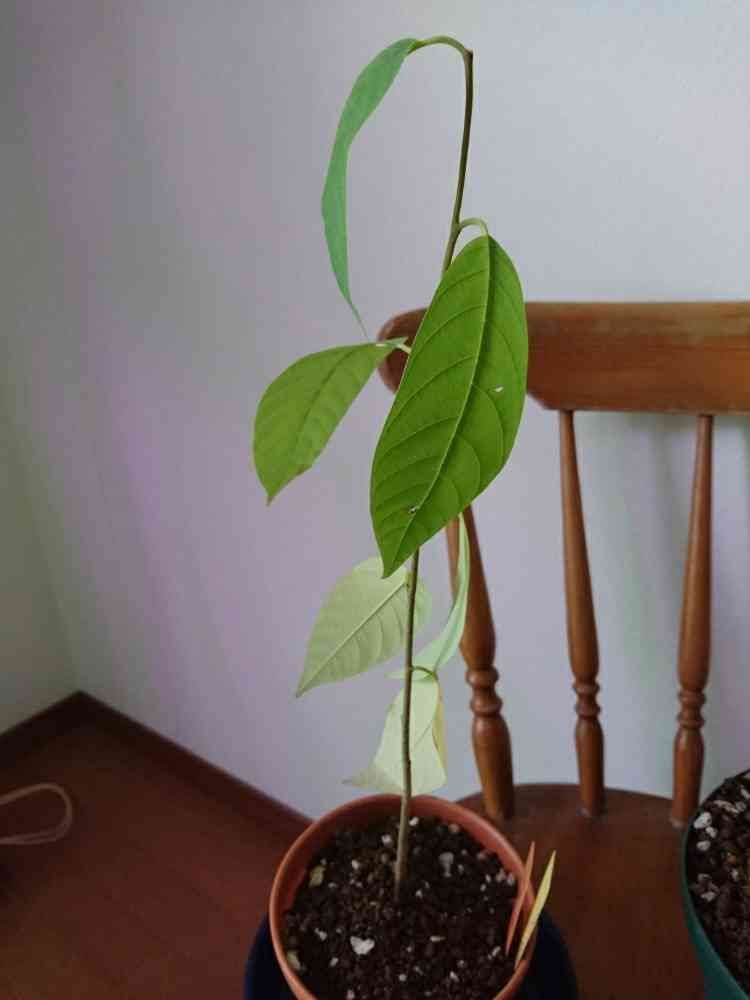 珍?フルーツ アテモヤの苗。某オークションでおまけでついてきた。植え替えてみたがだいぶ根っこが少なかったので枯れないか心配です🙀
