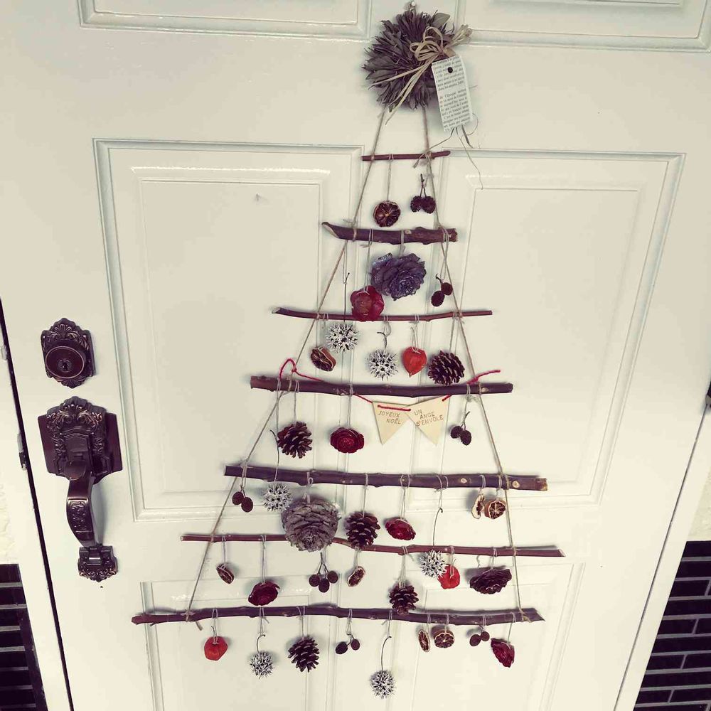 壁にかけて、ツリーの下の床にギフトボックス風にラッピングして箱なんかをいくつか並べると、とっても素敵なディスプレイになります