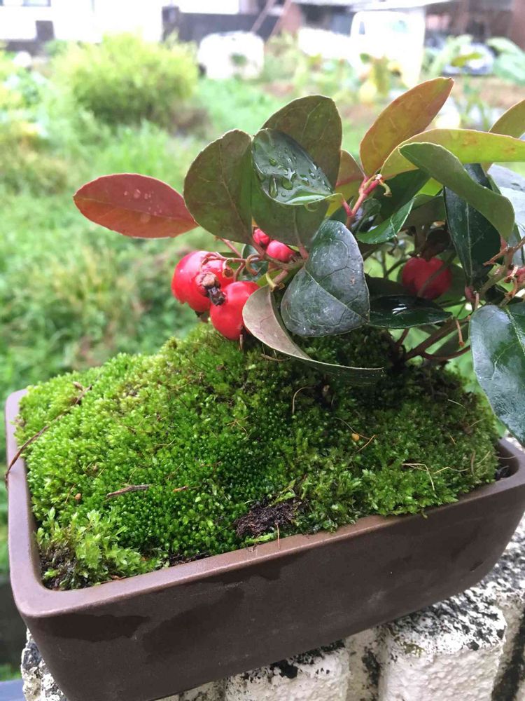 苔の感じもいいし、鉢もいいし、赤い実もかわいいし、値段もかわいいし...