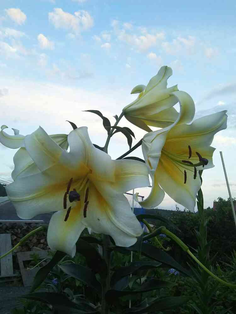 たぶん、テッポウユリかと😅夫がミックスの球根を植えたものですよ~🎵