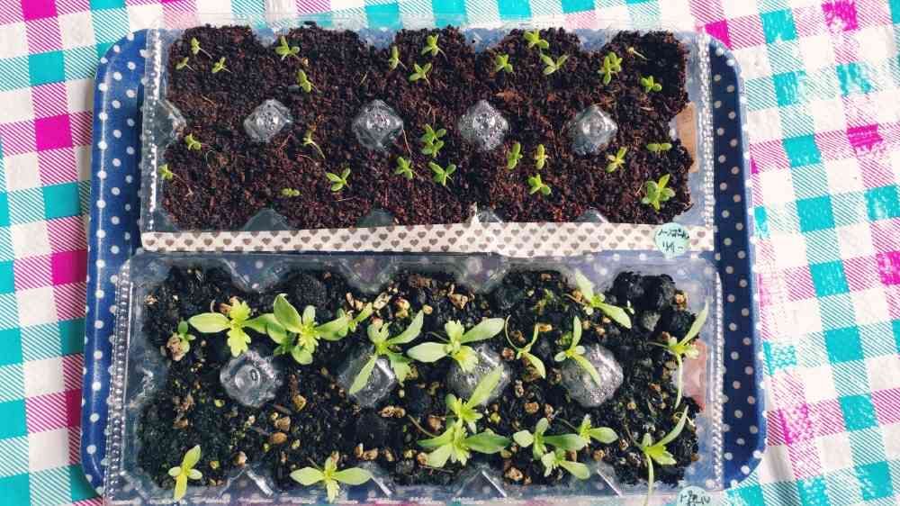 芽はピートモスの方が早く、遅く出た培養土はその後ぐんぐん育ちました🌱