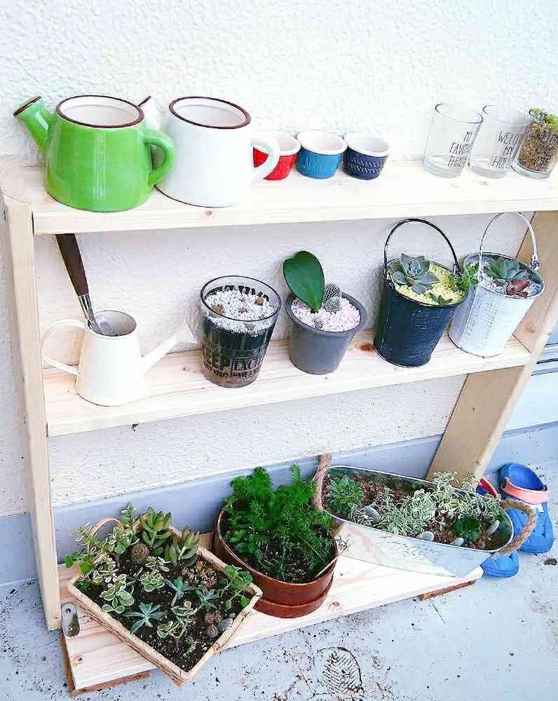 ダンナさんとホームセンターにいって多肉ちゃんたちの*日なたぼっこ用棚*を作ってもらいました!1枚198円の板2枚でこんなに素敵な棚が😍💛💛これでお日さまいっぱい当ててあげられるぞぉ☀