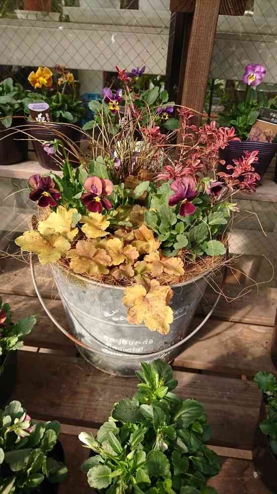 #夢と緑を運ぶ店ホピー#有限会社鈴蘭園#神戸市北区園芸店#ガーデニング#花屋#花のある暮らし#植物のある暮らし#寄せ植え#夢咲きヴィオラ#異邦人・あずき#コプロスマ#レインボーサプライズ#カレックス・アウバウム#ヒューケラ#ドルチェ・バタークリーム @ ホピー鈴蘭園