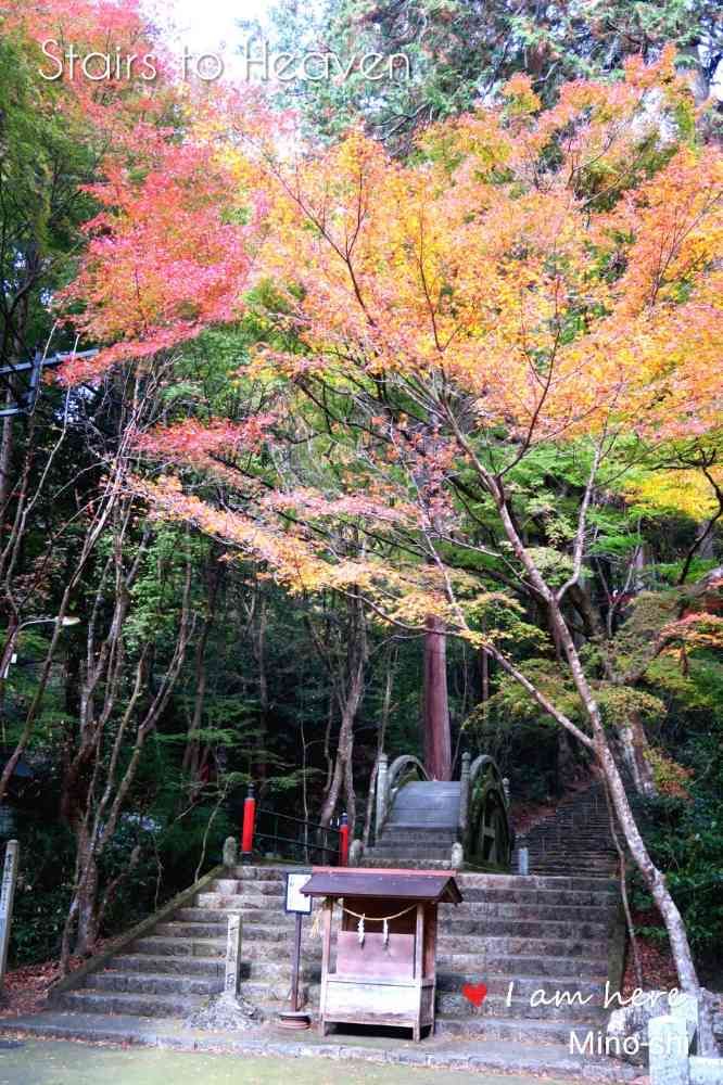本殿へのありがたい階段 Stairs to Heaven 、なかなかに急できつい…。🧗😣😧💨💦地獄の階段を登る人々を紅葉したモミジと杉が見守っている。🍁🌲⛩️