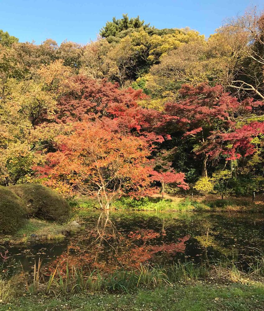水面に映った紅葉も含めて、一枚の絵のようです。