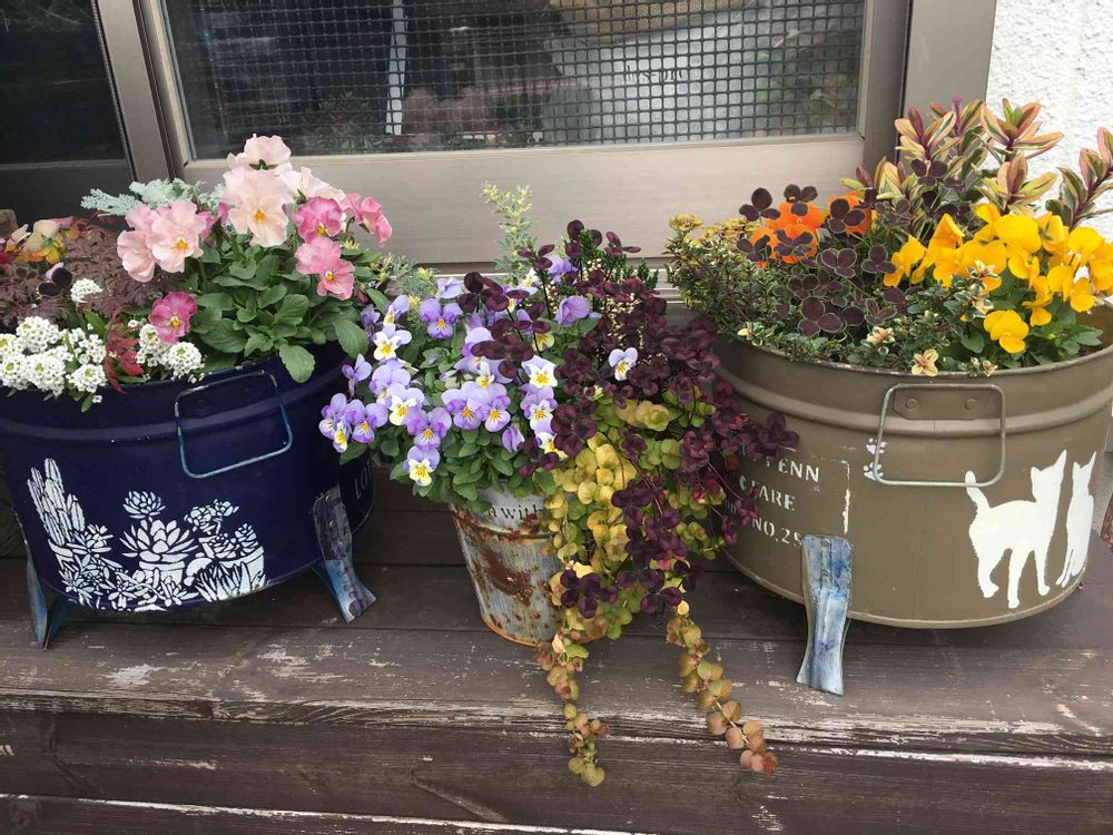 トマト園芸レイクタウン店さんで、持ち込みしたリメイク缶に寄せ植えしてもらったものです❤️