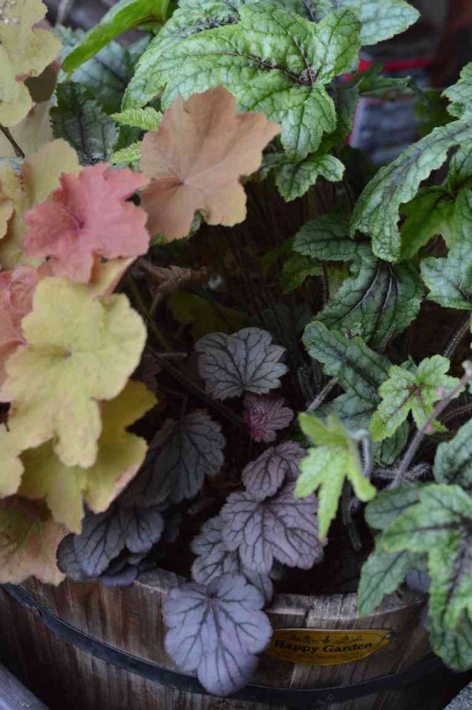 ぽかぽかなおさん、ヒューケラってほんといろいろな葉の色のものがありますよねぇ。さらに季節によって葉色が変わるのでネットの画像では詳しい品種、判断するのは難しいかも…葉物だけの寄せ植え、なかなか味があって気に入っています(^-^)