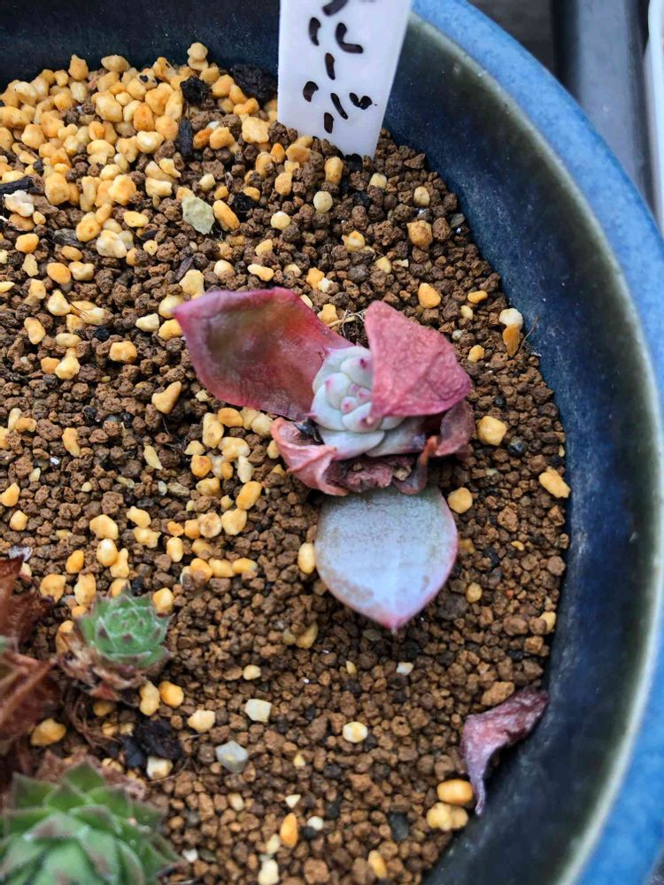 周りのもう死んでそうな葉っぱが成長点を包むように守ってる❤️