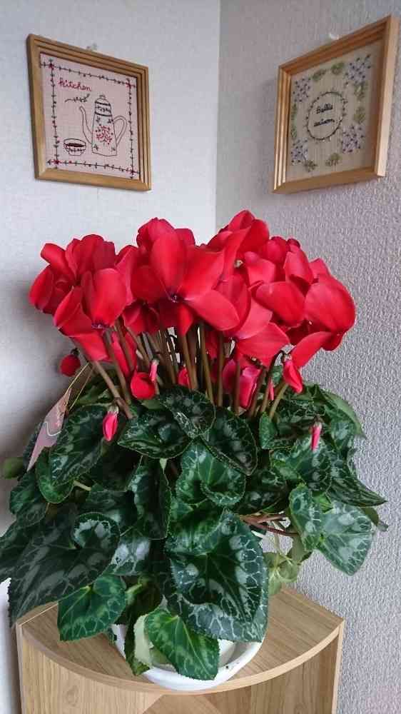 さ~ん❤️おはようございます🙋頂き物のシクラメンです。赤い花が好きです。