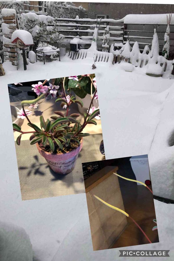 ぺぺさん星に⭐️に❓💦なんででしょう🤔この子は夏にお外でガンガンだったの😅お水もそんなに与えて無いけど野ざらししたら部屋に入れる前に花上がって来ててまだ咲いてるのよ🤔