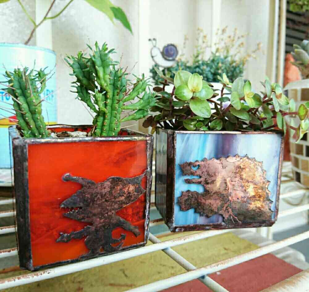 ステンドグラスで作ったウルトラ怪獣プランター。