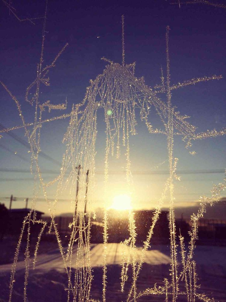 朝日で窓硝子に着いた、氷がキラキラ❄️