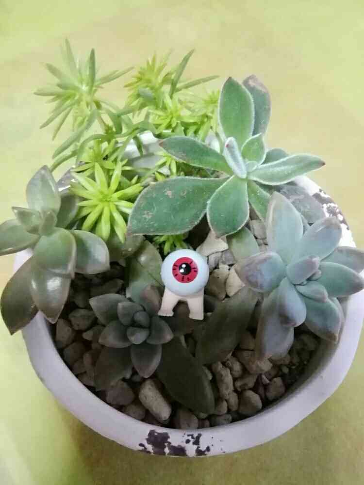 左の子ツヤツヤですねで(*´▽`)そのツヤ私もほすぃ~( *´艸`)(笑)多肉の寄せ植えに紛れてオヤジの表情?目情?が可愛いく見える~💕