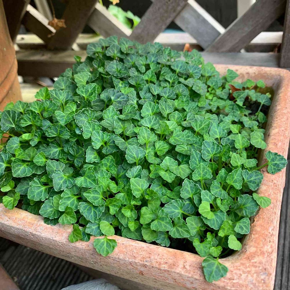 何年か前に買って、寄せ植えの相方がいなくなったらそこにも進出して、ついに鉢を征服したイシガキヤクシマスミレ。