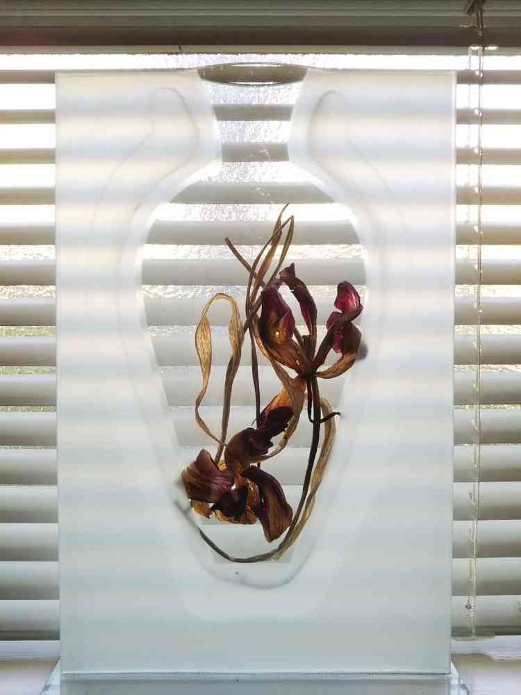 知人の生け花グループ展を見てきました。チューリップのドライ。