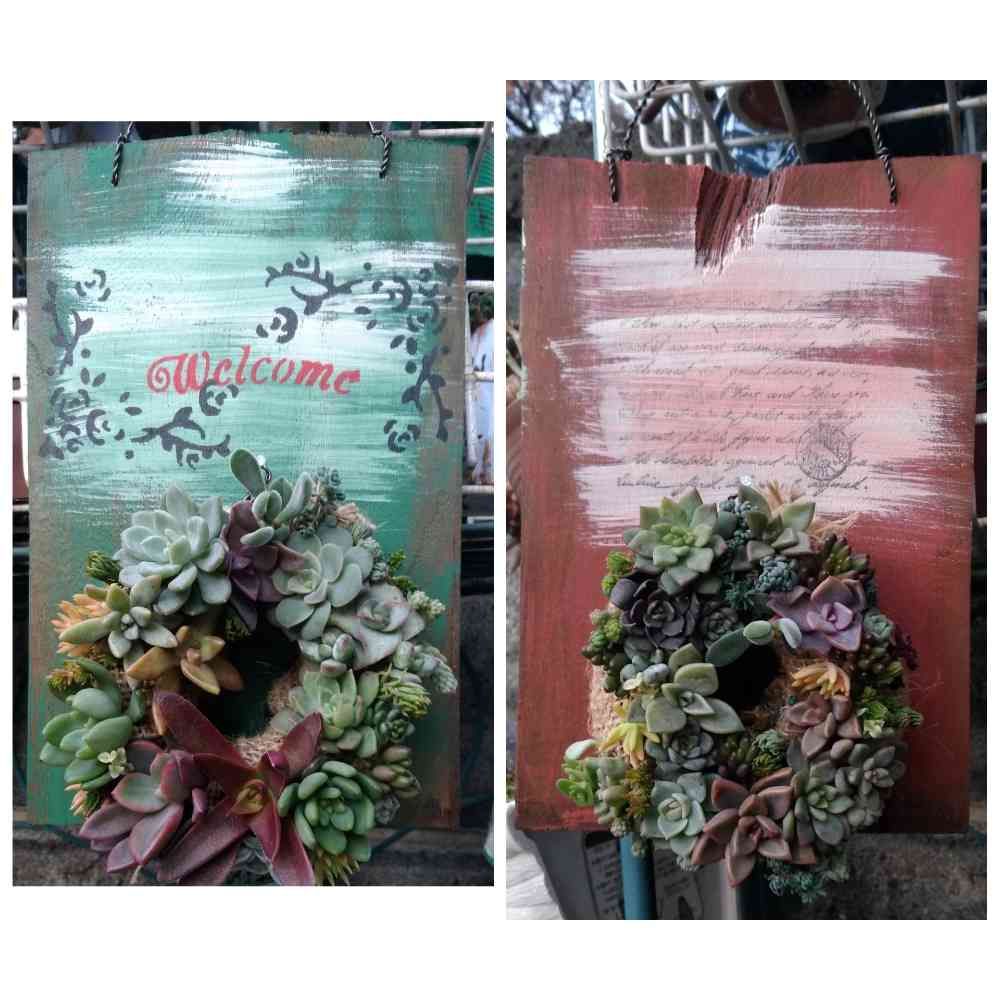 このリース麻袋から作ったんだけど中のコケパンパンにしたつもりだったけど、水分抜けたらふにゃふにゃなっちゃった😅したら抜ける抜ける多肉がゴロゴロ落ちちゃった😣改良して再チャレンジしまーす🤔
