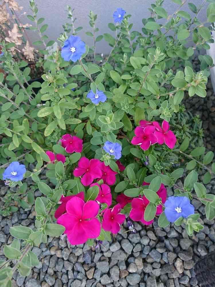 次男の鉢のニチニチソウとアメリカンブルー💙