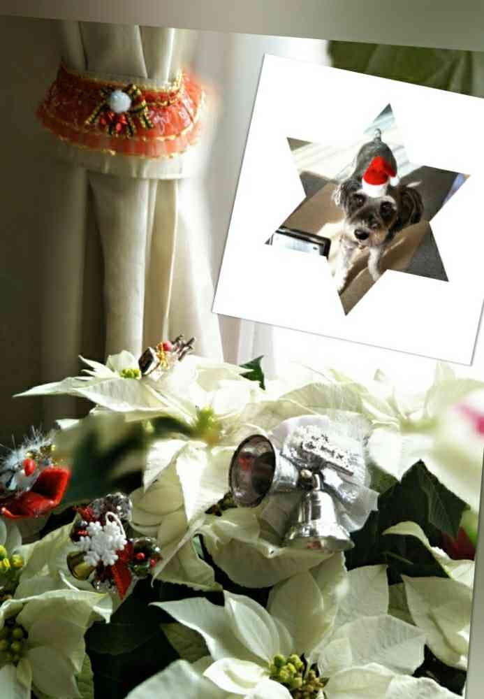 プリンセチアにクリスマス🎄の飾りを置いてクリスマスバージョン🎅