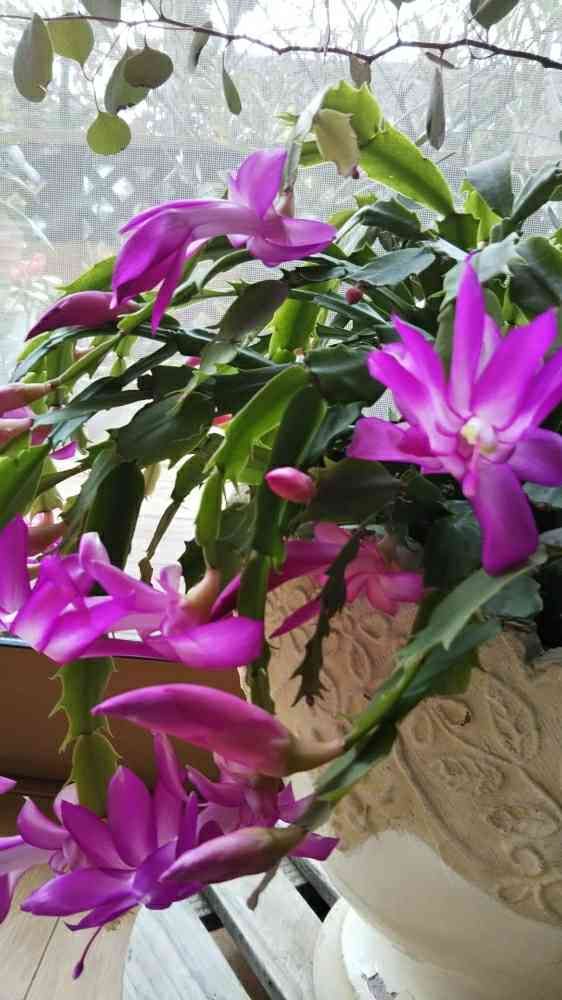 5年めのシャコバサボテンでーす。夏の間ずっと玄関の所におきっぱなし。水だけはあげる感じ、咲いてくれてありがとう😃透き通る感じが好きです。