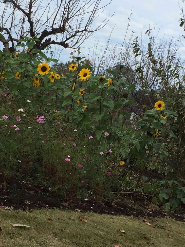 コスモスとヒマワリって何か不思議な組み合わせですね🤔綺麗だからいいけど😊👍💕