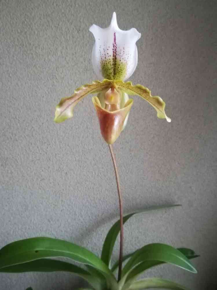 パフィオの中でも地味目な花ですけど好きな色合いです☺️