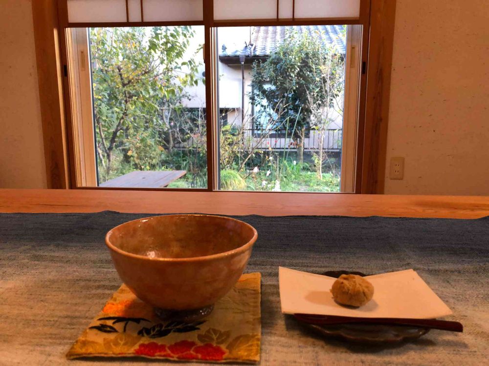 師走という事で 客間の和室を 夫が大掃除してくれたので、綺麗になったところで 久々にお抹茶を点てました。菓子はチルド保存してあった栗🌰で栗絞りです。栗100%の自然な甘み。