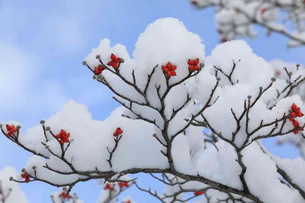 真っ白な雪に赤い実が