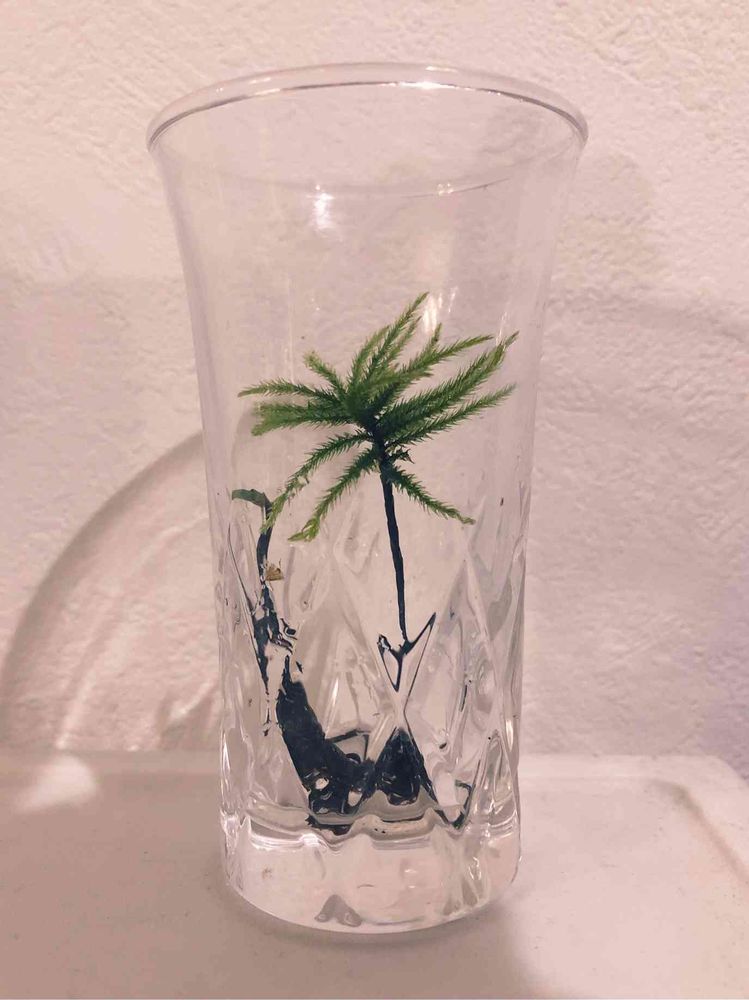 コケですか?和のテイストでありながらヤシの木のような風情もあり、それがガラスに収まっている‥不思議な魅力😻😻