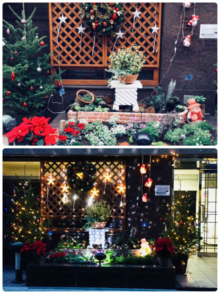 たまに買物途中に通る、小さなビジネスビルなのですが、ある日クリスマスの飾りつけが🎄