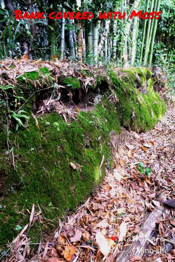 古道(廃道)脇の苔で覆われた土手、緑が美しい❗🌱🛤️😊👍