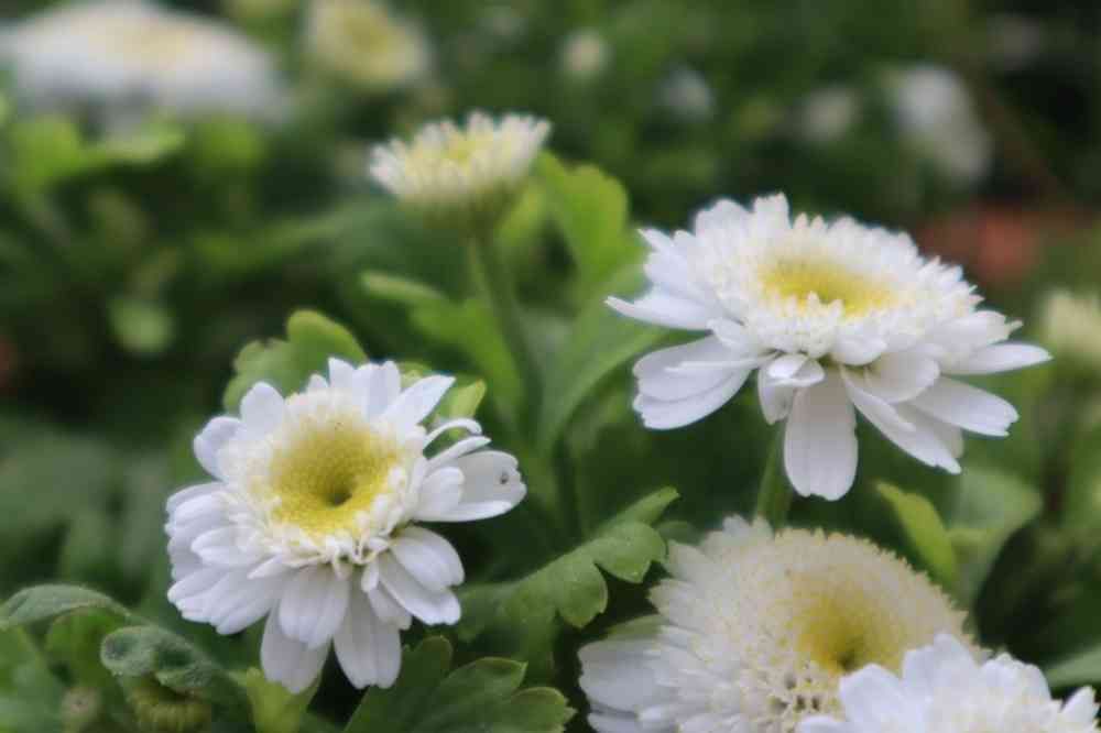 お花はマトリカリア。別名夏白菊。イヌカミツレ。丈は15〜20センチ。