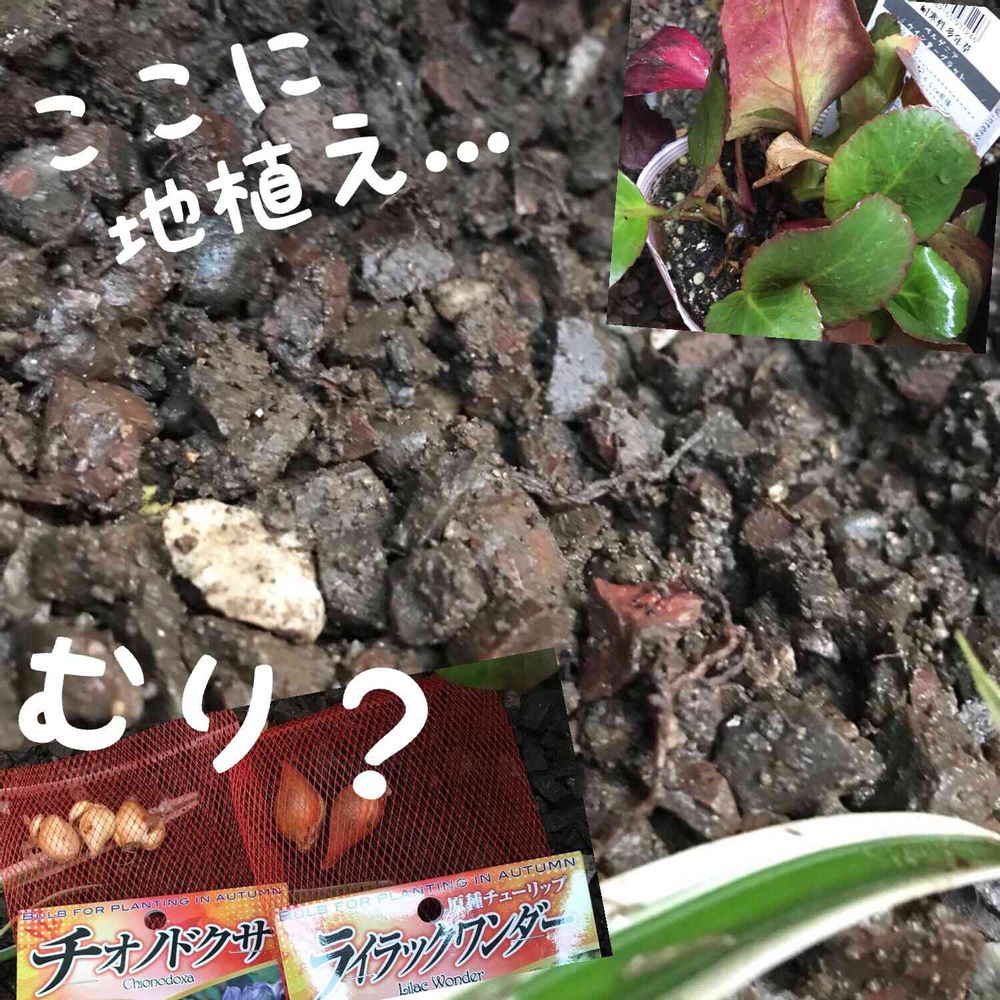 このジャリジャリのほとんど土がない場所に、球根とウインターグラット(ヒマラヤユキノシタ)を植えたいのですが、育たないでしょうか?