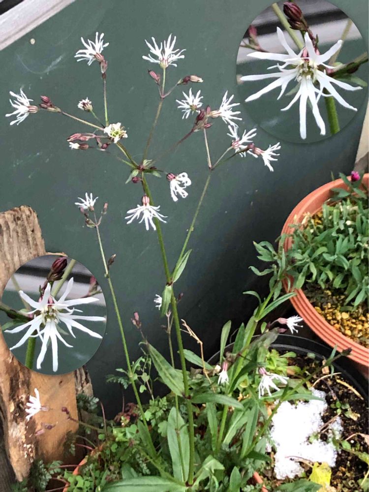 御近所さんの軒下で揺れてる白い🎇のような…サクラマンテマじゃないよね?