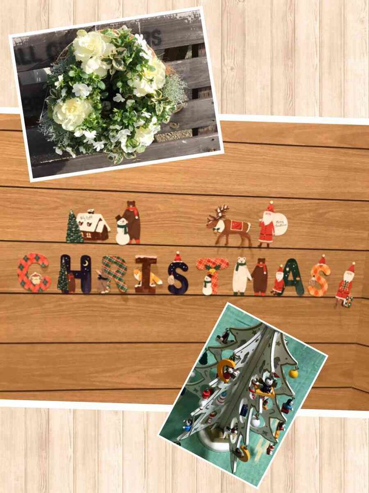 飲食店の壁にCHRISTMASの文字が可愛らしくレイアウトされていました🎅