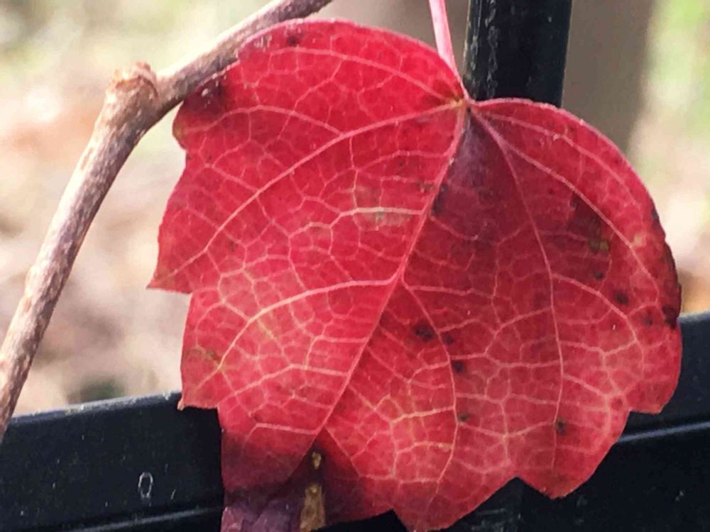 フェンスに一枚だけ残ってる蔦の葉❤️