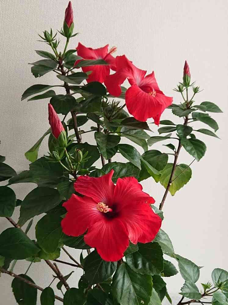 クリスマスカラー🎄✨🎅の ハイビスカス🌺の花が3個咲きました