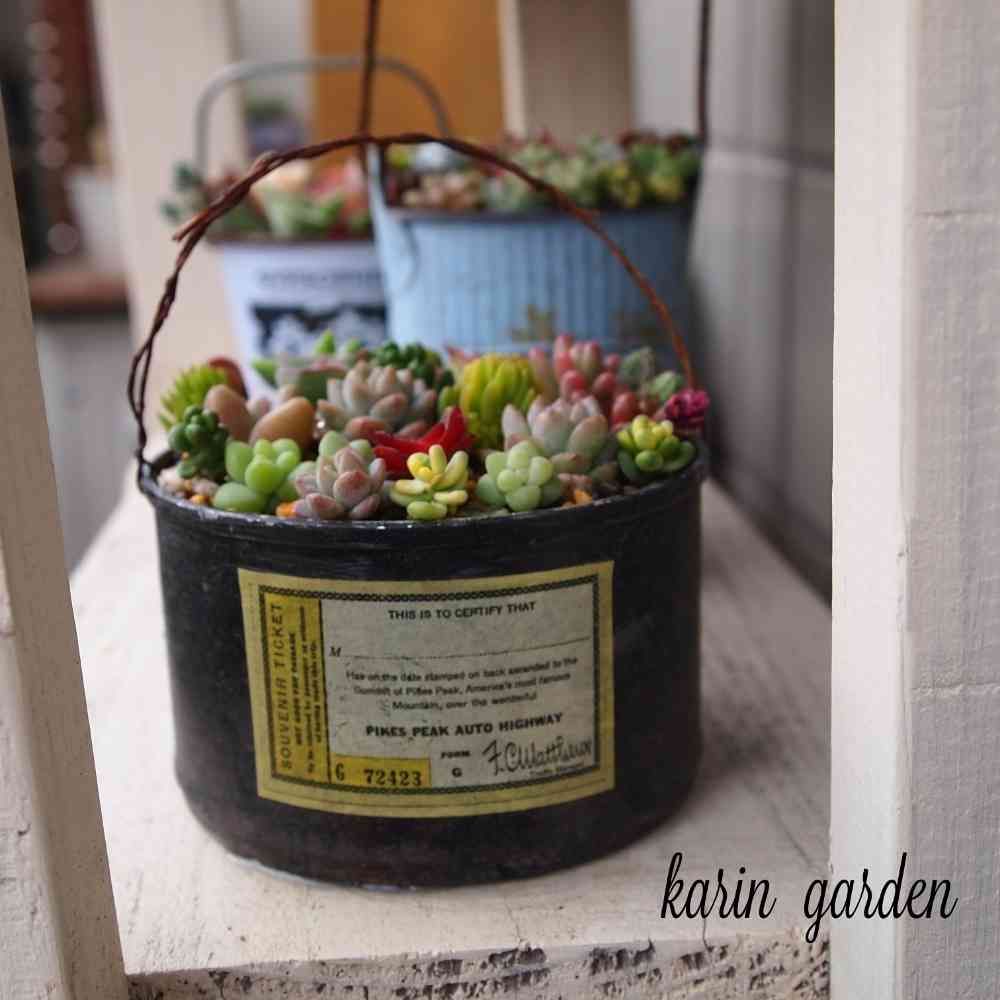 多肉さん可愛いい💖リメ缶もステキ~🎵
