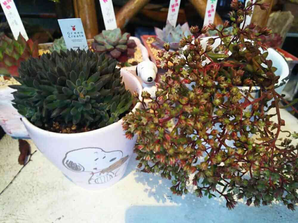 リメ鉢の作りおきがなかったので・・スヌーピーのマグカップに穴あけて、INしました💦