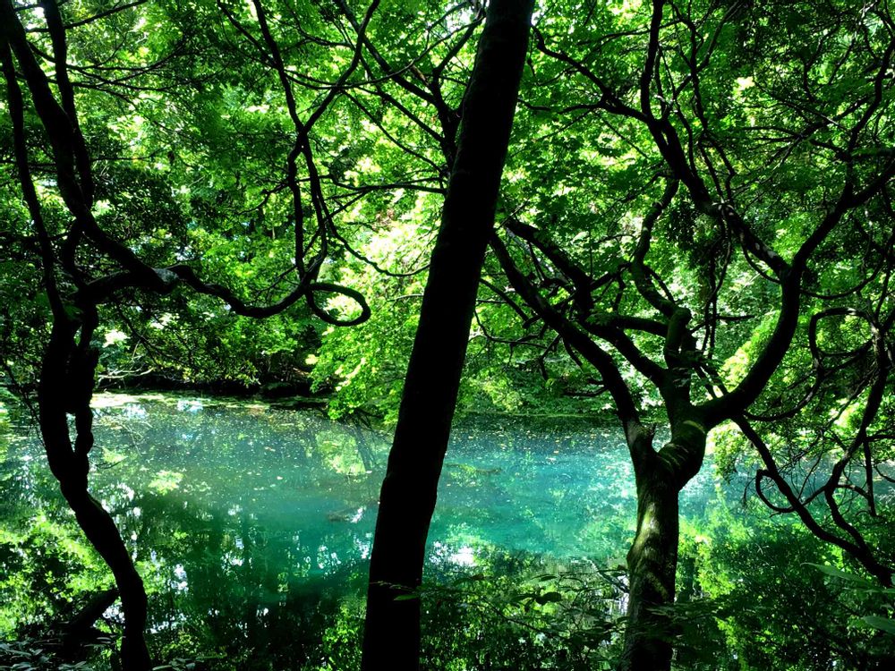 ございます。水の色が、グリーンで、綺麗ですね。まるで、パワースポット見たいな予感?