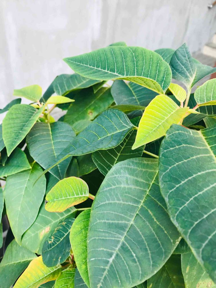 去年のクリスマス用に購入したポインセチア。夏越しもうまくいって葉っぱが沢山増えて10号鉢に植え替えるするほどになりました🙌