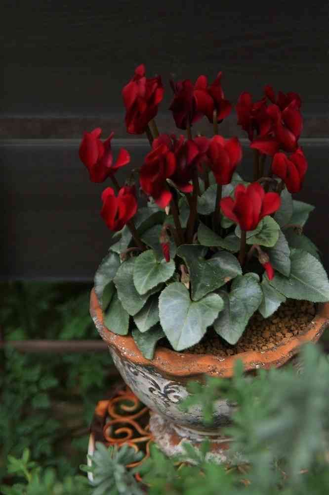 深い色とシルバーリーフが素敵なシクラメンさん💘
