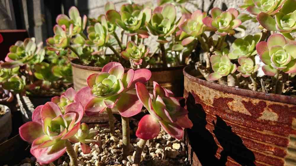 こっちは缶に植えてある子たちで完全放置の雨ざらし組です。地植えに比べるとかなり小ぶりで可愛く暴れてくれています🙃