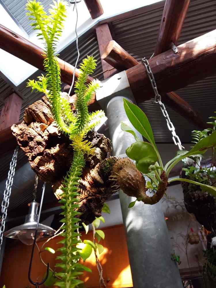コルクに着けたミルメコディア(アリ植物)とフペルジア🌿