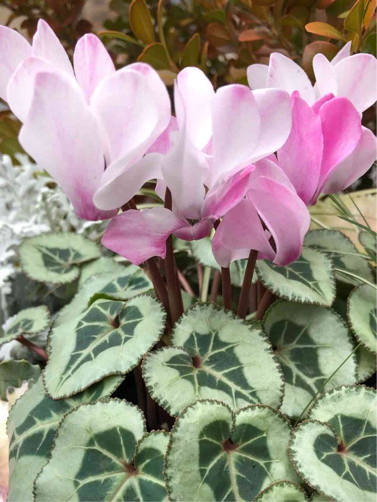 名札も付いてないシクラメンでしたが、この淡いピンクのグラデーション、有斑の葉のハートが可愛い💕
